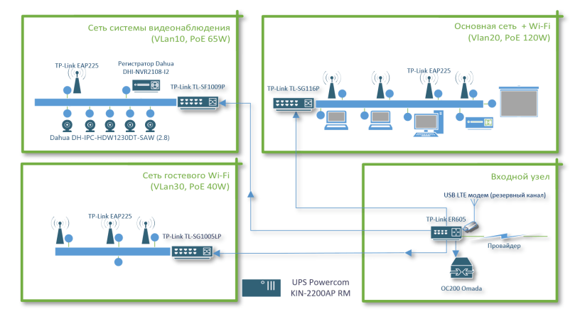 Стоимость решений типа Omada выше, но из схемы видно, что это очень мало влияет на стоимость сети в целом, а гибкость и безопасность архитектуры увеличивается на порядок.